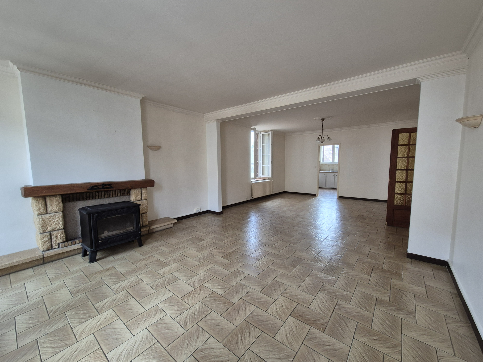 Ref 1472- A louer disponible de suite, grand appartement de 150 m² entre Nevers et Bourges, avec tous commerces ecoles à pieds, comprenant grande entrée et buanderie au RDC et à l'étage couloir avec rangements, pièce séjour / salle à manger lumineuse avec poele à bois, cuisine séparée aménagée, une très grande chambre avec nombreux placards, deux autres chambres, un bureau, grande salle de bains, WC séparés. Chauffage individuel gaz de ville avec chaudière récente, poele à bois et très bonne isolation. Garage dans cour arrière et jardin clos avec l'appartement à deux minutes à pieds au calme et à l'abri des regards. Libre de suite. Entretien chaudière + poele et taxe ordures ménagères inclus dans les charges.