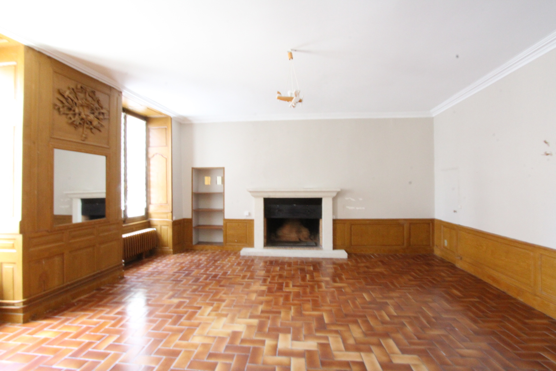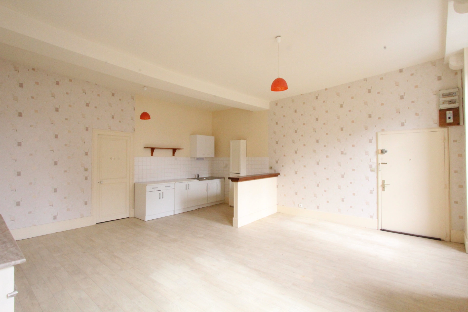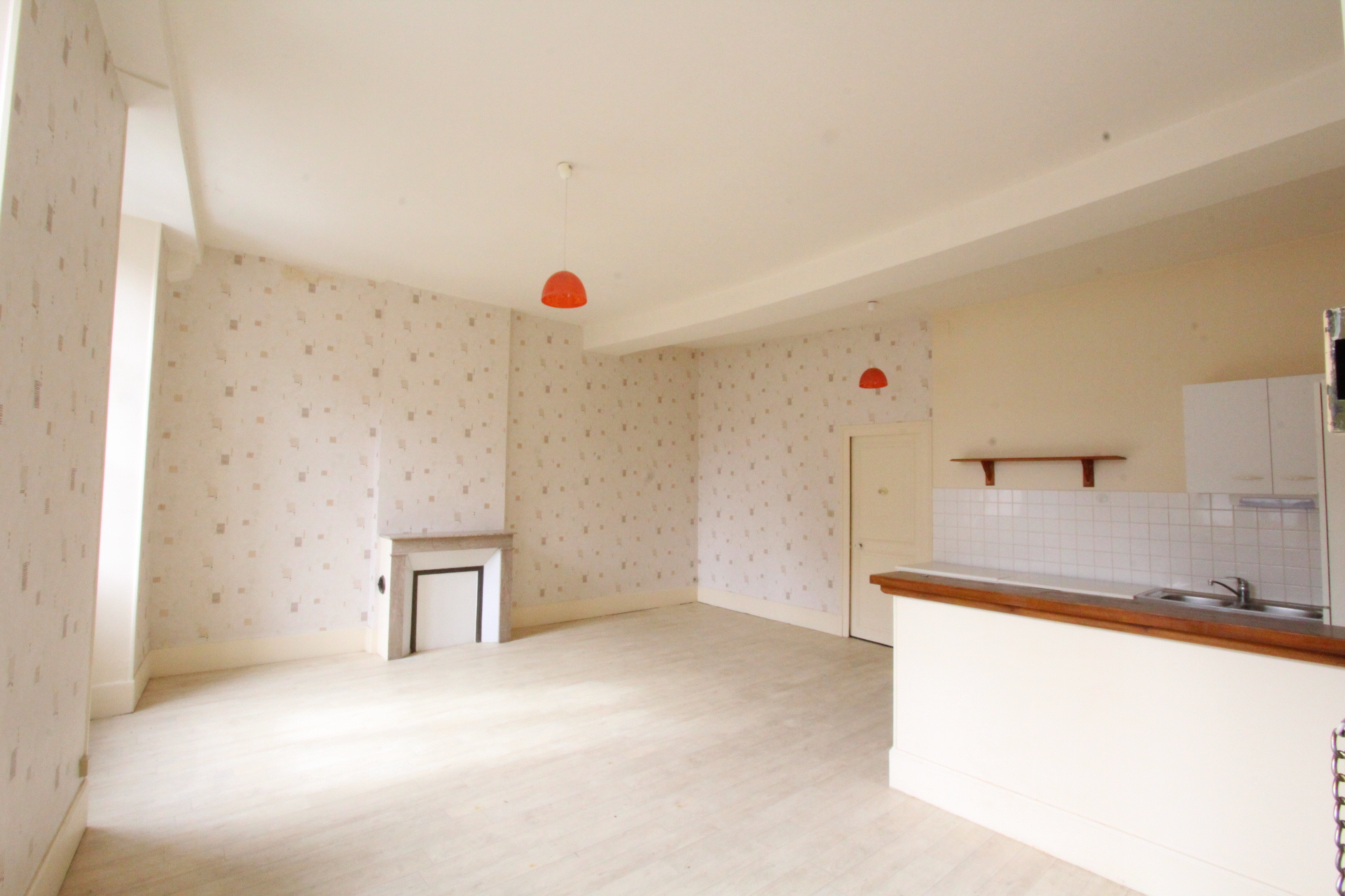 (3) L'appartement du fond F2 de 46 m² composé d'une entrée, un séjour avec boiseries avec coin cuisine de 21 m², la chambre avec cheminée de 16.8 m², une salle d’eau, WC séparés. A louer 350€/mois hors charges.