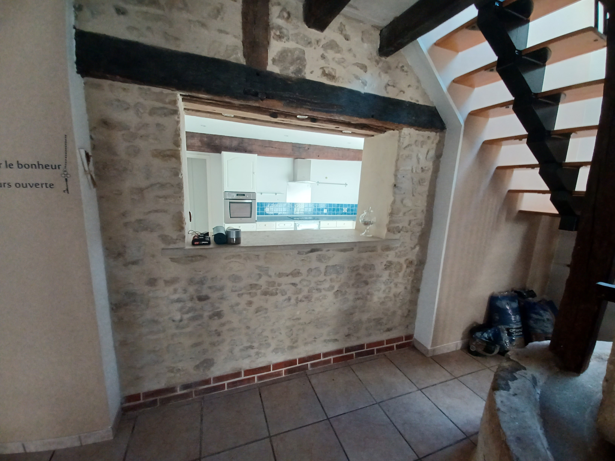 Maison habitable de suite comprenant en rez de chaussée : grande entrée desservant séjour/salon d'env 50m² semi ouvert sur cuisine aménagée et en partie équipée, local rangements, WC. A l'étage: grande pièce ouverte desservant trois chambres, une salle de bains avec WC et une salle d'eau. Dépendance attenante. jardin avec terrasse et abris de jardin séparé. Chauf climatisation reversible, poele à granules, double vitrage DPE "C". Tout à l'égout.
