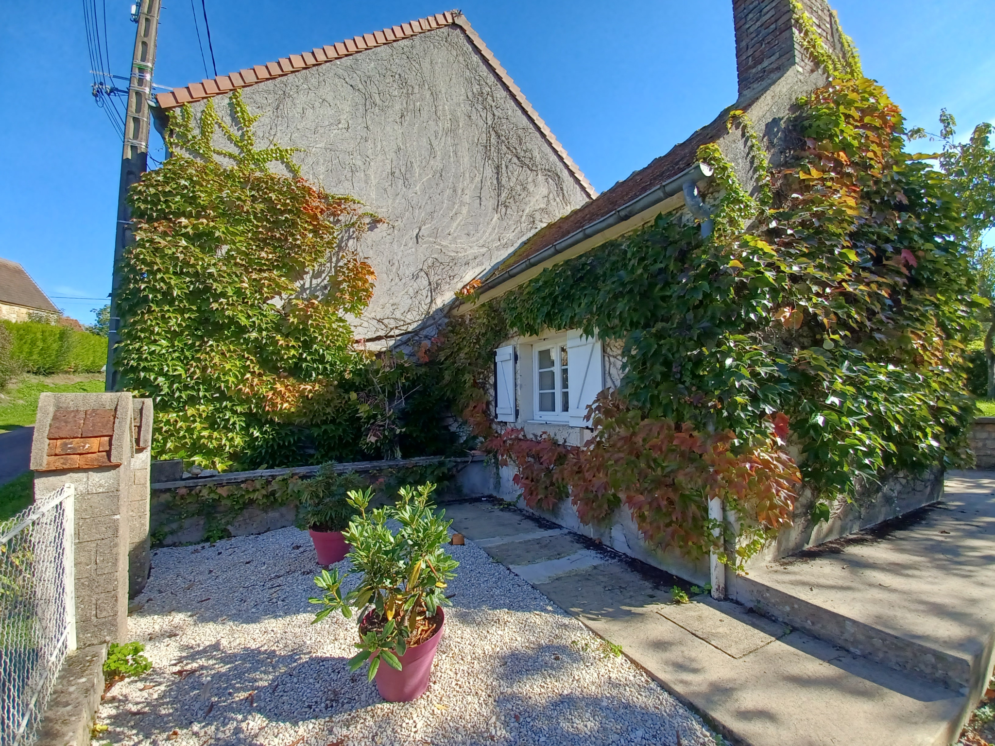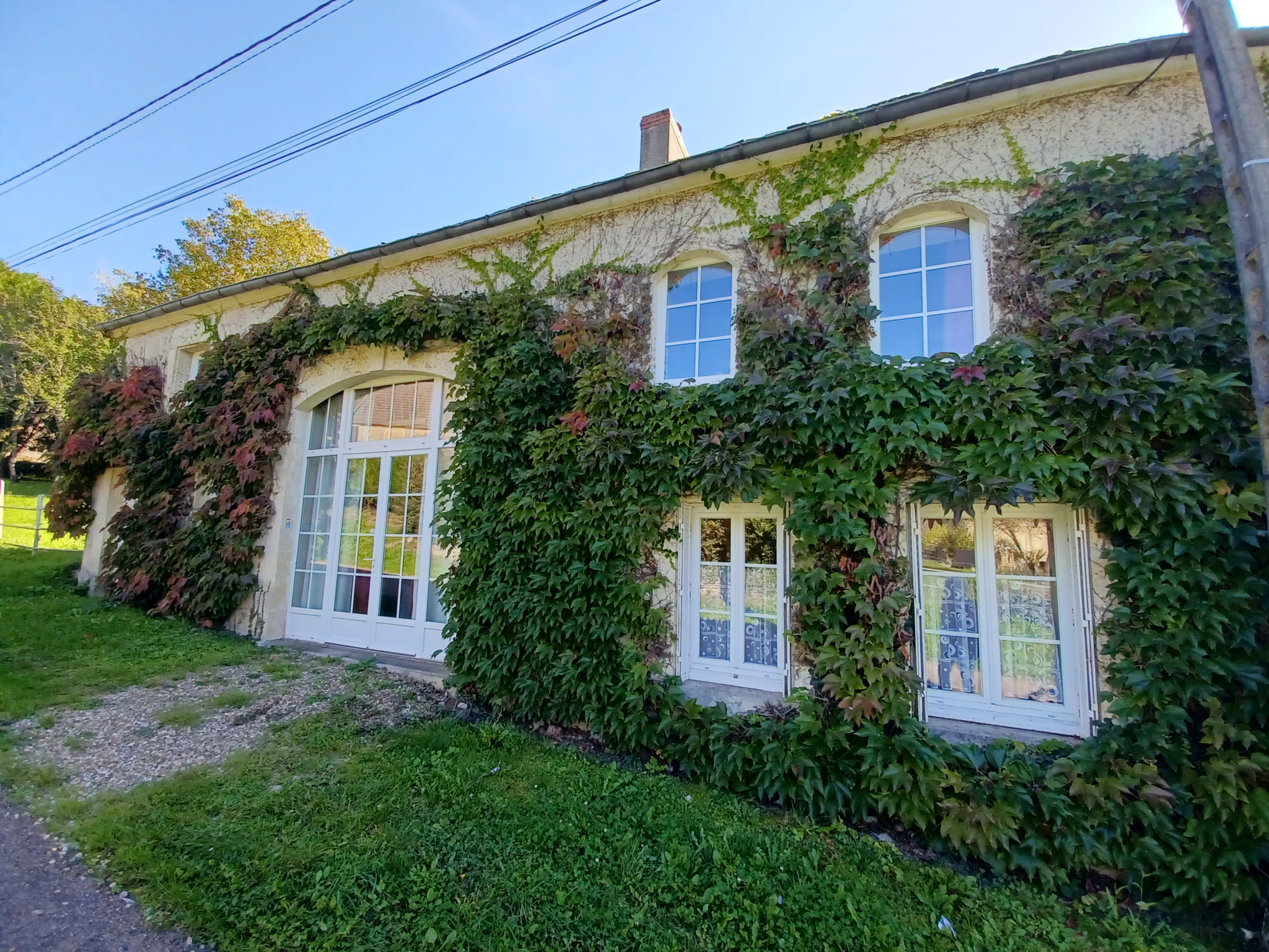 Maison comprenant en rez de chaussée : grande entrée de 16m², séjour avec cheminée, cuisine aménagée donnant sur terrasse, salle d'eau avec WC. A l'éatge palier-bureau, couloir desservant trois chambres, salle d'eau avec WC. Dépendance attenante d'env 27m²+grenier Chauffage par poele à granules et chauffage électrique performant avec double vitrage PVC et bonne isolation. Terrain attenant et arboré. Tout à l'égout.