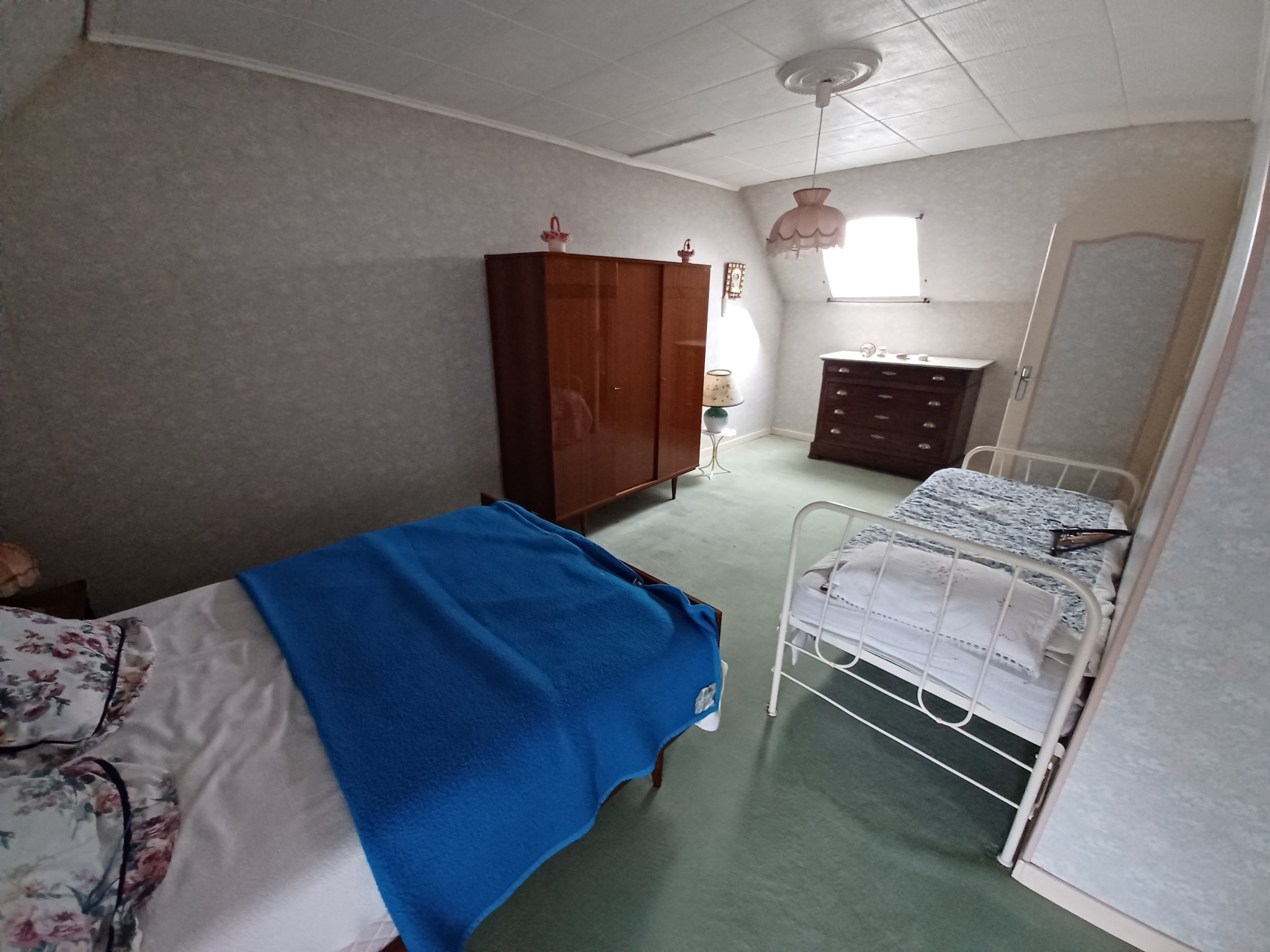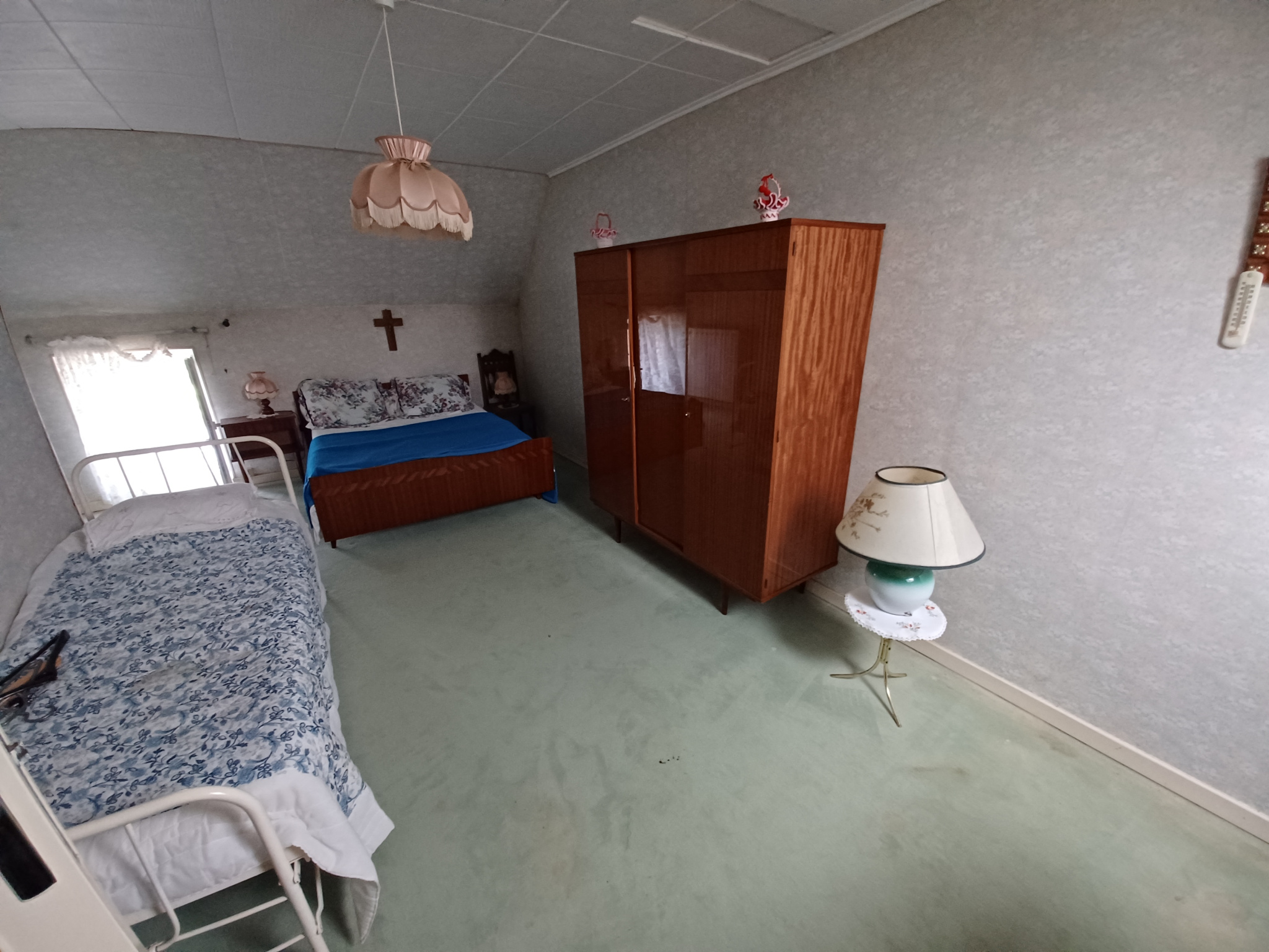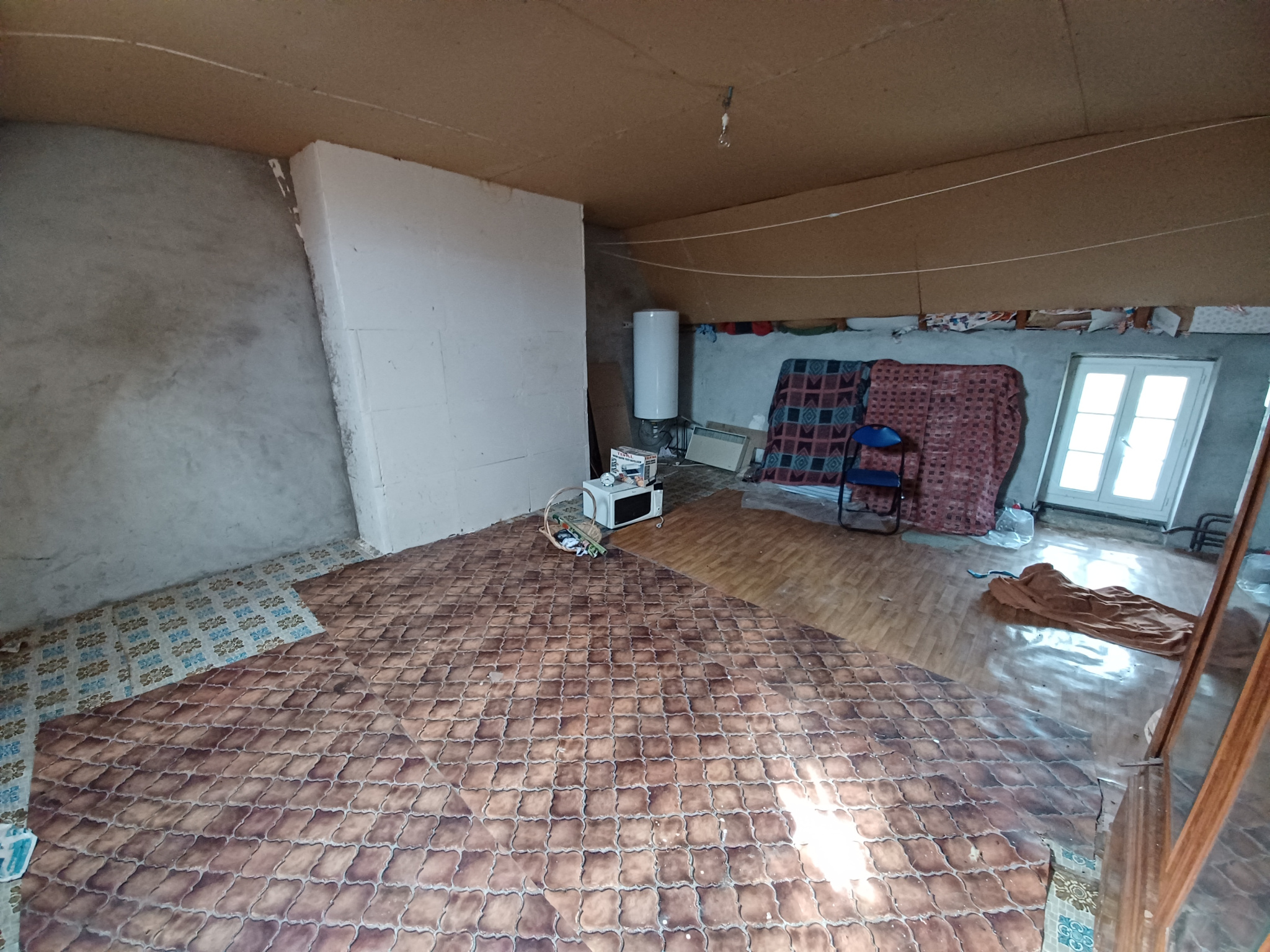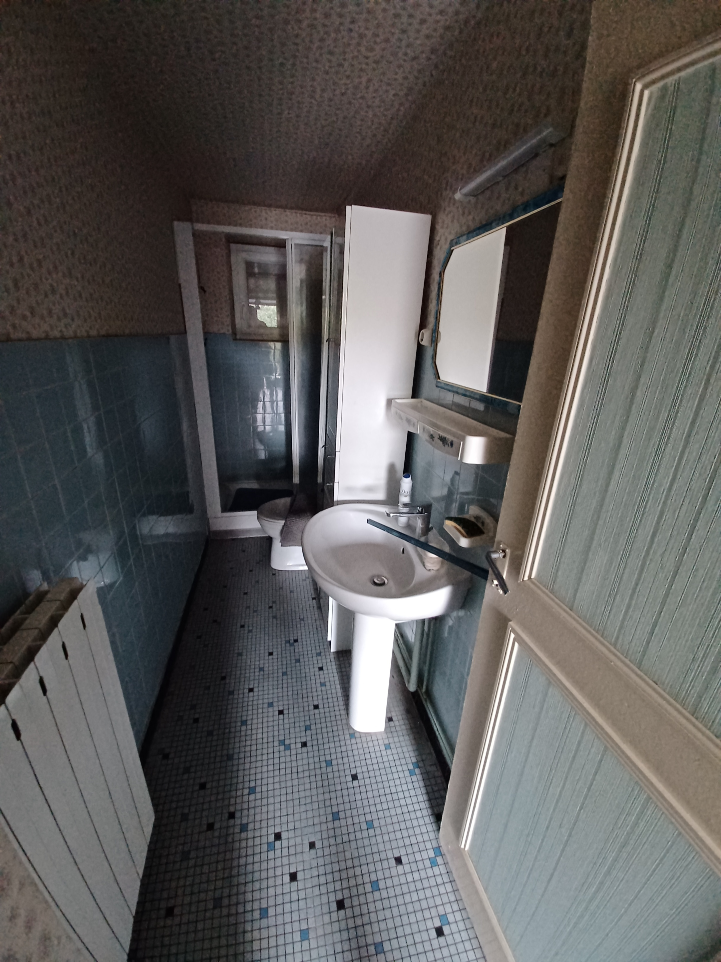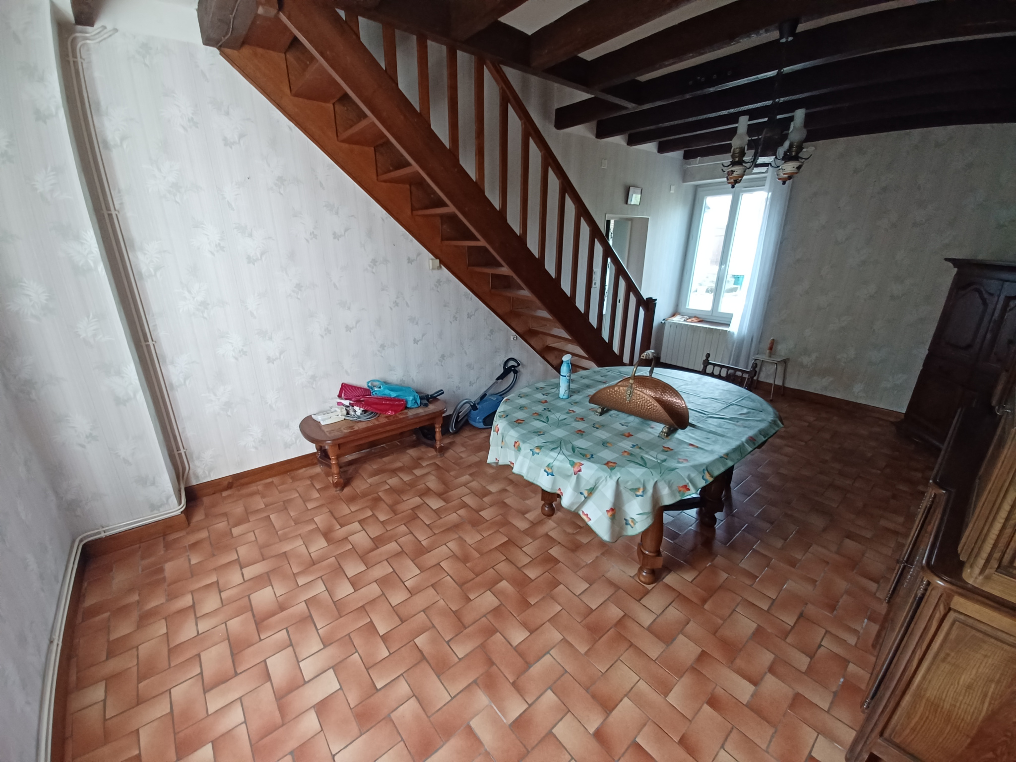 Maison comprenant en rez de chaussée : entrée desservant cuisine, un séjour, une chambre, salle d'eau et WC. A l'étage une grande chambre et grenier facilement accessible et aménageable d'env 28m². Chauffage cent gaz de ville+ double vitrage. Assainissement individuel. Jardin attenant et cour avec garage et cave. TF : 700 €.